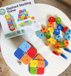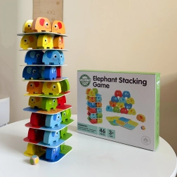 Vivez le divertissement et l’aventure avec le jeu Éléphant sur éléphant de Woopie. Ce jeu comprend 46 pièces, dont des blocs colorés et des cartes de jeu. Idéal pour passer du temps en famille. Des couleurs vives et des formes adorables attirent l’attention et offrent deux options de jeu fascinantes : un jeu d’empilement ou une alternative au Jenga.