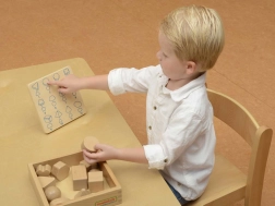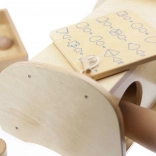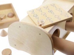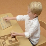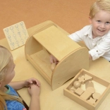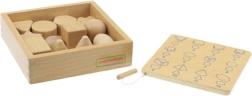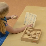 Il est recommandé d'utiliser l'ensemble en combinaison avec la boîte pour Devine au toucher (ME04055). Un plateau en bois pour ranger les jouets est également disponible.