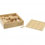 Ce jouet formidable de la marque Masterkidz aide les enfants à développer leurs compétences sensorielles. Le set comprend 12 blocs en bois de formes différentes à deviner au toucher. Même si cela peut être difficile pour l'enfant au début, à chaque essai il s'améliore et entraîne ses compétences.
