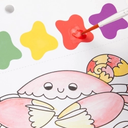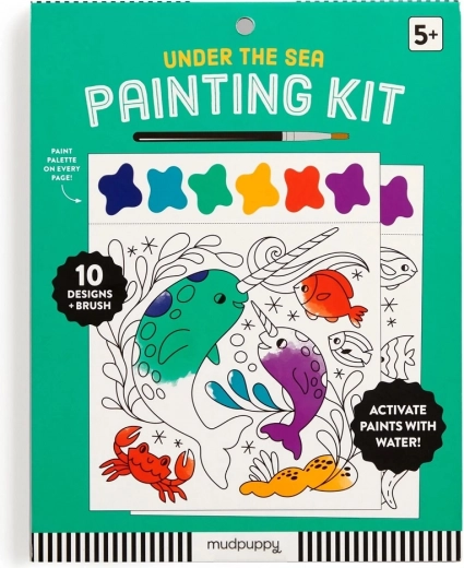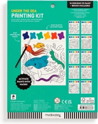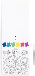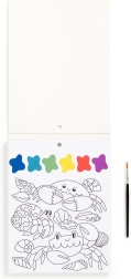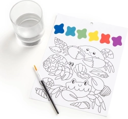 Le coffret contient un pinceau et 10 feuilles préimprimées à colorier, chacune avec un motif de vie marine et une palette de couleurs. Il suffit de mouiller le pinceau et de commencer à créer ! Chaque feuille est en outre perforée, ce qui permet de détacher facilement l’œuvre terminée.