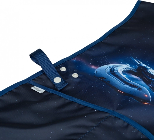 Tablier pour enfants Baagl Vaisseau spatial en matériau lavable avec deux poches. Parfait pour les arts plastiques et les clubs. Entretien facile, design pratique.