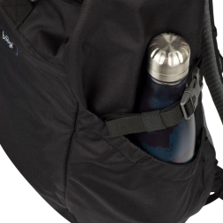 Une poche latérale élastique garde la bouteille à portée de main et une sangle de compression la fixe en toute sécurité. D’autres poches permettent de ranger clairement les essentiels du quotidien.