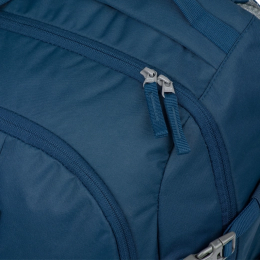 Le matériau déperlant sèche rapidement et se nettoie aisément. Des éléments pratiques comme le compartiment intégré pour ordinateur portable, la poche pour lunettes, le mousqueton pour clés et la sangle d’attache au bagage de voyage facilitent l’organisation. La ceinture pectorale et la ceinture ventrale amovibles aident à répartir la charge de manière équilibrée.