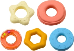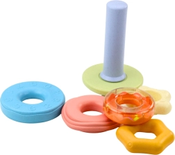 Chaque anneau a une texture différente et l'un d'eux est équipé d'un grelot. Ainsi, le jouet offre des stimuli sonores et sensoriels variés, qui soutiennent le développement de la perception et de la concentration. Toutes les pièces sont fabriquées à partir de matériaux sûrs, durables et dépourvus de substances nocives, parfaitement adaptés aux plus jeunes utilisateurs.
