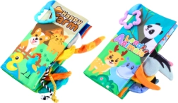 Ces livres doux sont entièrement sûrs et respectueux de la peau sensible des nourrissons. Chaque livre contient des éléments en relief et des pages bruissantes qui favorisent le développement sensoriel de l'enfant — stimulant le toucher, l'ouïe et la vue. Des attaches pratiques permettent un montage facile à une poussette ou un siège auto. Chaque livre est thématiquement distinct : le monde des dinosaures, des animaux aquatiques, des animaux terrestres et de la ferme, ce qui enrichit la découverte du monde environnant.
