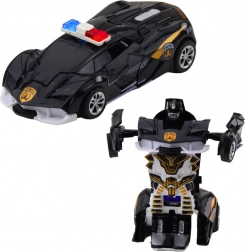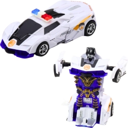 À première vue, il ressemble à une voiture de sport classique de police, mais après une collision avec un obstacle, sa forme change et révèle une fonction cachée – la transformation en robot, prêt pour l'action. De cette manière, les enfants peuvent jouer avec le jouet de deux façons – comme un véhicule et comme une figurine humanoïde.