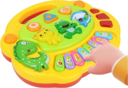 Ce piano coloré offre un excellent divertissement pour votre enfant, qui apprendra à reconnaître les voix de la grenouille, du chat, du chien et de nombreux autres animaux, ce qui stimule le développement de l'imagination et de la pensée associative.