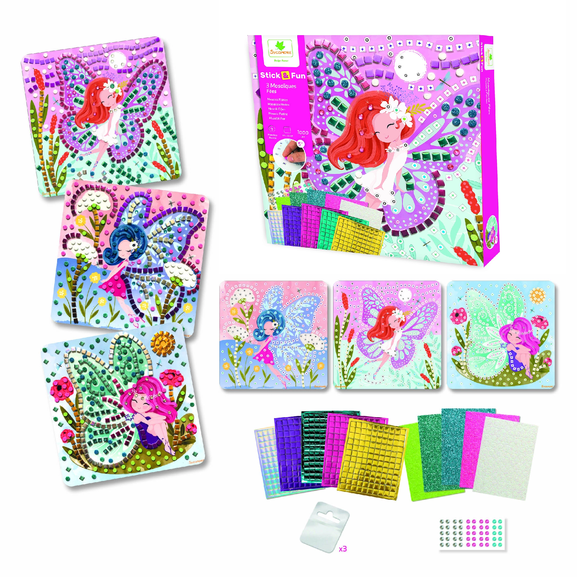 Les enfants seront ravis de créer leurs propres magnifiques tableaux en mosaïque avec des fées. À l’aide de strass autocollants et de pièces de mosaïque scintillantes, ils complètent chaque image, qui brillera ensuite d’un éclat unique. Une fois terminés, les enfants pourront fièrement exposer leurs tableaux grâce aux suspensions transparentes fournies.