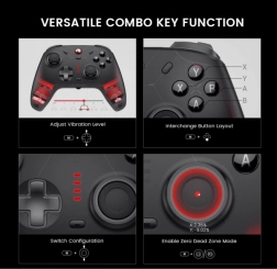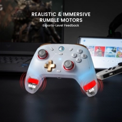 Grâce à la connectivité triple mode (2,4 GHz, Bluetooth, câble), choisissez facilement la méthode de jeu idéale avec une latence minimale. Le gyroscope 6 axes prend en charge le contrôle par mouvement sur SWITCH, les moteurs de vibration asymétriques procurent un retour réaliste, et les boutons frontaux e-sport à micro-interrupteurs garantissent des pressions rapides et sûres. Des effets RGB personnalisables et un changement rapide de profils apportent style et flexibilité.