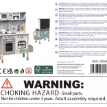 De nombreux accessoires sont inclus : vaisselle, ustensiles de cuisine, tableau de tri des déchets avec bacs coulissants et un ensemble de chef (tablier et toque). La hauteur de la cuisine est réglable pour un usage confortable. Piles non incluses.