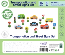 Découvrez un jeu ludique et éducatif pour les enfants dès 3 ans : un ensemble en bois de véhicules et de panneaux de signalisation de Woopie Green. Le coffret comprend 6 véhicules colorés et 9 panneaux de signalisation, dont un feu tricolore, qui aident à apprendre de manière amusante les règles de circulation. Le tout est fabriqué en bois de qualité et peint avec des peintures sûres et non toxiques, avec des bords arrondis pour une sécurité maximale.