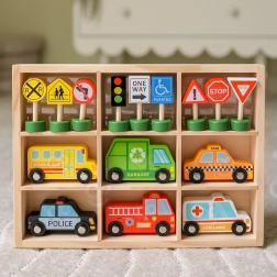 Ce set en bois est idéal pour développer la motricité fine, l’imagination et les compétences sociales. Les enfants peuvent créer leurs propres villes, scénettes et situations sur la route, apprendre à reconnaître les véhicules et les panneaux et comprendre naturellement les principes de la sécurité routière.