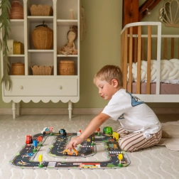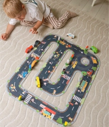 Le set comprend 6 véhicules, un feu tricolore et 8 panneaux qui aident les enfants à acquérir naturellement les règles de base de la circulation.