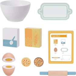 Le set comprend un ensemble complet d’accessoires : bol, farine, sucre, œuf à scratch, rouleau à pâtisserie, plaque de cuisson, biscuits et recette. Le jeu développe la créativité, l’imagination, les compétences manuelles et la concentration – le tout sans écran.