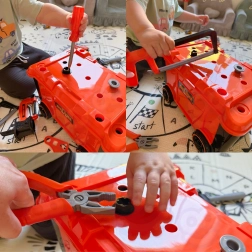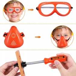 Inclus : lunettes de protection, serre-joint, scie, pince, tournevis et clés. Les enfants peuvent tester en toute sécurité le travail comme de vrais artisans.