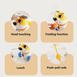 Le chien aboie et émet des sons réalistes, réagit au toucher et, après avoir été “nourri” avec l’os inclus, montre sa joie. Les oreilles et la queue pivotantes à 360° augmentent la stimulation sensorielle, tandis que la poignée élastique permet une progression fluide sur le sol sans accrocs – à la maison comme sur le tapis.