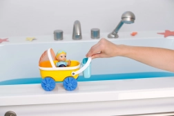 La joyeuse poussette BABY born Splish Splash avec la poupée Emma transforme chaque rituel du soir en un jeu aquatique ludique. Les enfants peuvent pousser la poussette le long du bord de la baignoire, la fixer à l’aide des ventouses et découvrir les effets d’eau avec la capote-passoire. Emma est prête à nager : il suffit de remonter ses bras vers l’arrière et de relâcher – elle nage toute seule.