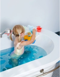 La structure en plastique robuste, les formes arrondies et les couleurs vives stimulent les sens et la motricité fine. Le set est idéal pour le bain, la petite piscine et le jeu au lavabo et, grâce au panier amovible, il se nettoie facilement et s’utilise de manière polyvalente.