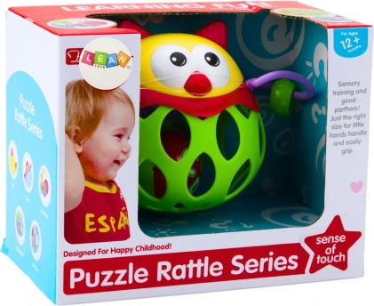 La balle-hochet en forme de hibou vert est un choix idéal pour développer la coordination visuelle et motrice chez les tout-petits. L’intérieur du hibou renferme une petite bille qui, en mouvement, émet des sons agréables stimulant l’ouïe et attirant l’attention de l’enfant.