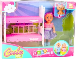 Poupée avec lit superposé et petit chien est un set adorable pour les enfants, qui stimule leur imagination et offre de nombreuses possibilités de jeu créatif.