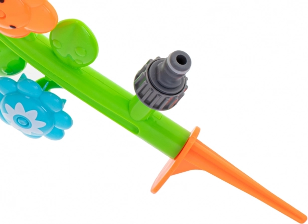 Le montage est on ne peut plus simple : plantez la pointe dans le sol, raccordez le tuyau d'arrosage via un raccord rapide standard et c'est prêt. La construction en plastique résistant tient plusieurs saisons et les couleurs vives invitent à jouer encore et encore.