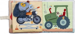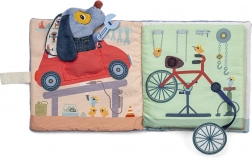 Magnifique livre textile interactif pour les enfants dès 12 mois, qui stimule la vue, l’ouïe, la motricité, l’imagination et la pensée. Les illustrations et activités présentent différents véhicules dans le garage.
