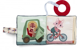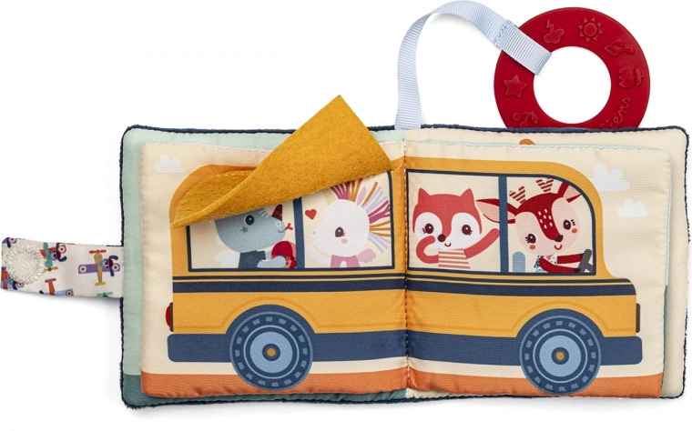 Le livre en tissu avec le motif du chien Jules offre à votre enfant d'innombrables heures de plaisir. Grâce à une sangle en Velcro, vous pouvez facilement l'attacher à une poussette ou un lit, ce qui facilite sa manipulation et son rangement. Le livre stimule la vue, l'ouïe et inclut un anneau de dentition intégré qui soulage lors des poussées dentaires. Le livre ne contient pas de texte, mais grâce à ses illustrations joyeuses, il incite à raconter de petites histoires simples.