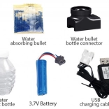 - Blaster, réservoir, lunettes de protection, batterie, câble USB