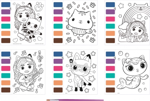 Peinture à l’aquarelle La Maison magique de Gabby : 6 images, pinceau et aquarelles pour un amusement créatif.