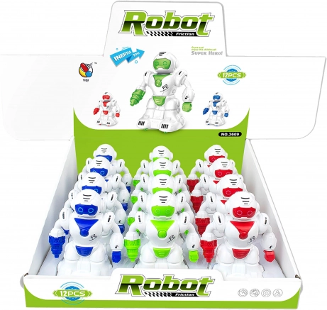 Découvrez le plaisir de jouer avec un robot à inertie de 12 cm, disponible en trois couleurs vives : vert, bleu et rouge.