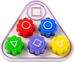 Chacun des cinq dés est fabriqué en matériau résistant grâce à l’impression 3D et arbore l’une des couleurs vives – rouge, jaune, bleu, violet ou vert. Les symboles sur les dés, tels que triangles, cercles et carrés, reprennent les motifs emblématiques de la série, renforçant ainsi l’expérience de jeu.