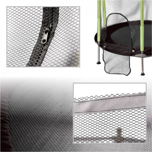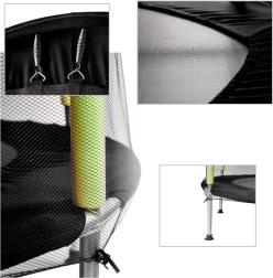 Le filet de protection entoure fermement la surface de saut et l’entrée à double fermeture éclair empêche toute ouverture involontaire. Les manchons en mousse sur les poteaux protègent des chocs pour que les enfants puissent jouer en toute tranquillité.