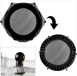 Six pieds en acier avec embouts antidérapants maintiennent solidement le trampoline en place. La toile élastique et 36 ressorts robustes assurent un rebond fluide et des atterrissages confortables.