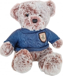Cet ourson en peluche est fabriqué en plush de haute qualité, doux et délicat dans une teinte grise, très agréable au toucher et sûr même pour les plus jeunes enfants. Ses poils denses, ses pattes arrondies et son visage amical avec un nez et des yeux durs créent un ensemble harmonieux qui enchante par son apparence naturelle. Habillé d'un pull tricoté avec un écusson brodé sur la poitrine, l'ourson apparaît stylé et distinctif, ce qui lui confère non seulement le rôle de jouet, mais aussi de décoration.