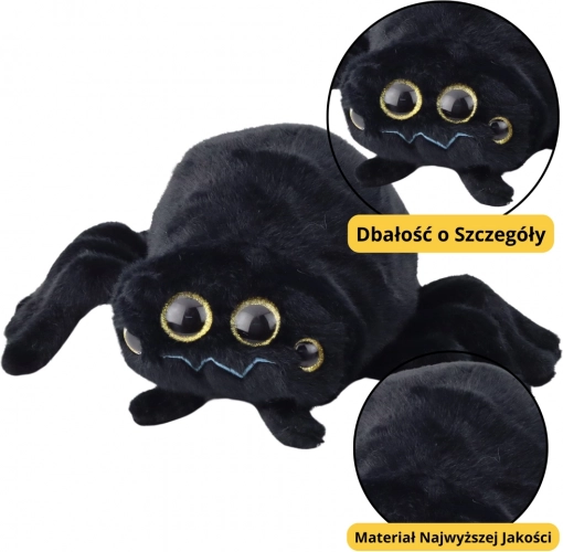 L'araignée en peluche est un jouet impressionnant qui ravira les enfants amateurs de curiosités naturelles. Elle se distingue par des détails soigneusement réalisés, tels que plusieurs paires d'yeux brillants, des petites pattes moelleuses et de jolis sourires brodés, ce qui rend ce jouet adorable même pour les plus jeunes.