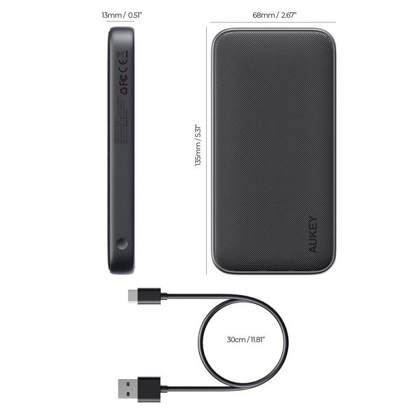 L'Aukey Spark Go est une solution innovante pour tous vos besoins de charge. La batterie externe est équipée de la technologie USB-C pour une charge rapide, permettant une sortie de 5 V/3 A compatible avec iPhone, Android et d'autres appareils USB-C.
