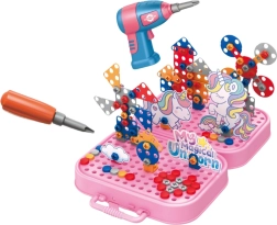 Ce kit de construction créatif en forme de valisette est un jouet éducatif qui stimule l’imagination, développe les compétences manuelles et favorise l’apprentissage de la pensée logique et de la concentration. Grâce à la perceuse à piles fournie et sécurisée, les enfants peuvent créer en toute autonomie diverses constructions tridimensionnelles à partir de vis colorées et d’éléments d’assemblage. Ce processus de vissage et de conception développe la précision des mouvements, la patience et la persévérance. Le motif licorne, les couleurs pastel et l’emballage esthétique et refermable rendent l’ensemble visuellement attrayant et accueillant pour les enfants.