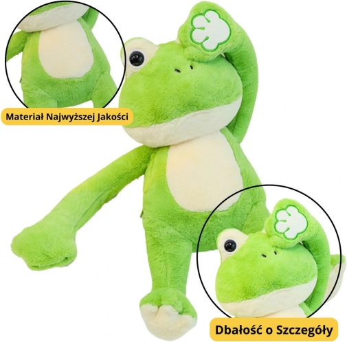 La grenouille en peluche est un jouet amusant et créatif qui séduit par son apparence joyeuse et sa fonctionnalité. Elle contient des aimants dans les pattes et au niveau des yeux, permettant à la grenouille de se couvrir les yeux et de jouer à « coucou », ce qui est parfait pour un jeu créatif développant l’imagination et les compétences des enfants. Sa couleur verte classique avec un ventre clair, ses grands yeux et son sourire amical en font immédiatement la préférée des plus petits.