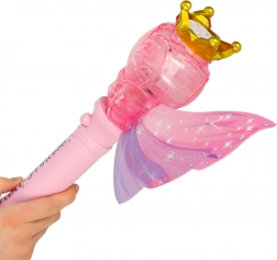 La machine à bulles de savon en forme de baguette magique transforme faire des bulles en un jeu d'enfant! Appuyez simplement sur un bouton et l'appareil commence à émettre de nombreuses petites bulles en une fraction de seconde.