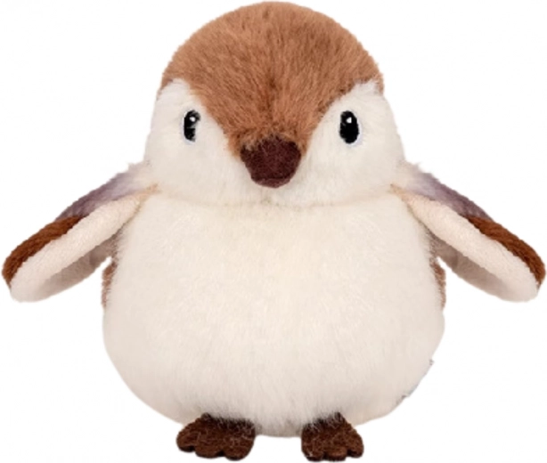 Ce petit oiseau en peluche, fabriqué dans une matière agréable et moelleuse, rappelle un moineau aux formes arrondies, avec un petit bec et de larges ailes. Grâce à sa palette naturelle, il offre un charme classique et un rendu très réaliste.