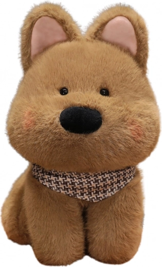 Le chien en peluche brun est un jouet incroyablement mignon qui suscite immédiatement la sympathie. Conçu avec des détails soignés, il se distingue par sa fourrure douce, son grand nez noir et ses petites joues rouges. Ses doux yeux noirs et ses oreilles dressées lui confèrent un charme unique, renforcé par un ravissant foulard dans une teinte brune.