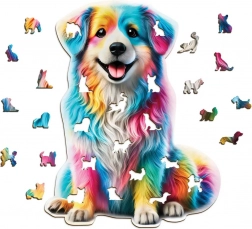 WOODEN CITY puzzle en bois avec 250 pièces en forme de chien arc‑en‑ciel offre une expérience d’assemblage unique. Grâce aux pièces découpées au laser en forme d’animaux et à l’emballage écologique, il séduit par son originalité.