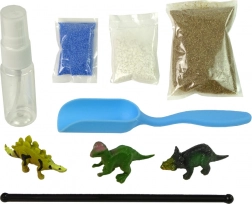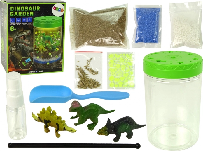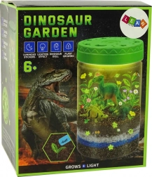La décoration lumineuse Jardin Dino en bocal propose une activité éducative et ludique où les enfants peuvent tester leurs talents de jardinier. Le kit comprend :