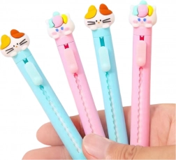 La gomme coulissante avec figurine de chat propose des couleurs pastel et un design ludique qui séduira non seulement les enfants. Elle est douce et respecte le papier tout en effaçant efficacement le graphite. Parfaite pour l’école, la maison ou les activités artistiques.