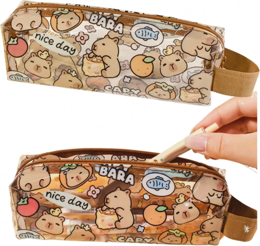 Cette trousse scolaire est fabriquée en PVC durable et imperméable, ce qui la rend parfaite pour une utilisation quotidienne à l’école comme pour les activités de loisirs. Le matériau transparent avec impression colorée permet de voir facilement à l’intérieur. La trousse est équipée d’une poignée latérale marron pour un transport aisé.