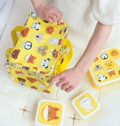 Ce sac isotherme jaune se distingue non seulement par son beau design avec des amis animaux, mais aussi par sa praticité. Il est fabriqué à 90% de plastique recyclé, ce qui contribue à la protection de l’environnement.