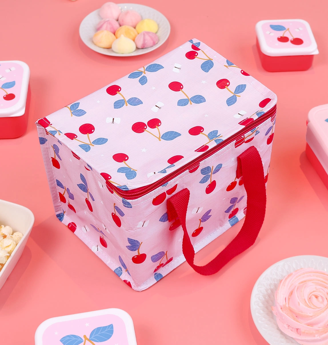 Le sac isotherme à motif cerises est idéal pour garder les aliments et les boissons au frais. Il offre suffisamment d’espace pour des boîtes à goûter, des bouteilles d’eau ainsi que des fruits et légumes frais.