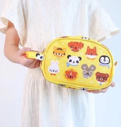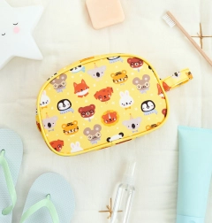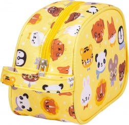 Trousse de toilette jaune avec impression animale, idéale pour une utilisation quotidienne ou en voyage. Elle offre suffisamment d'espace pour tous les besoins d'hygiène de base et se transporte facilement.