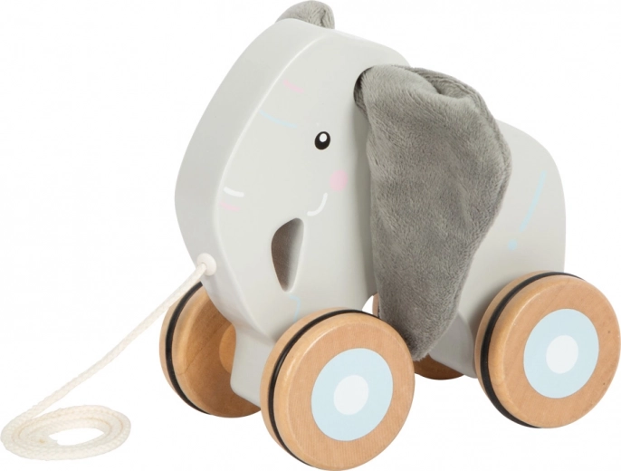 Jouet à tirer en bois Éléphant avec oreilles froissables
