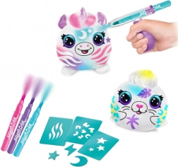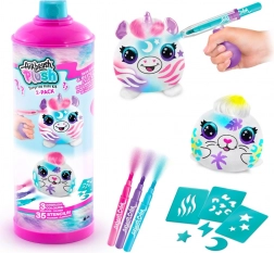 Ce coffret ludique et créatif est livré avec un outil d’aérographe et trois feutres, offrant des possibilités de design infinies. À l’intérieur, vous trouverez deux peluches surprise de 10 cm que vous pouvez décorer selon votre imagination à l’aide des pochoirs fournis. La série propose au total 6 types de peluches, rendant chaque boîte unique !
